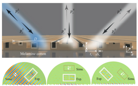 然而,传统声学超表面的设计仍然受到其潜在物理机理的限制。传统超表面的设计过程中认为元胞内的单元之间是解耦的,因此对元胞单元采取独立设计的方法。然而,由于衍射的存在,波场的非局域性会强烈地影响超表面的效率,甚至改变超表面的波场操控行为(图1)。因此在超表面设计中考虑胞内单元的相互作用,基于此实现的非局域超表面可以极大提高声学超表面调控声波的效率。
