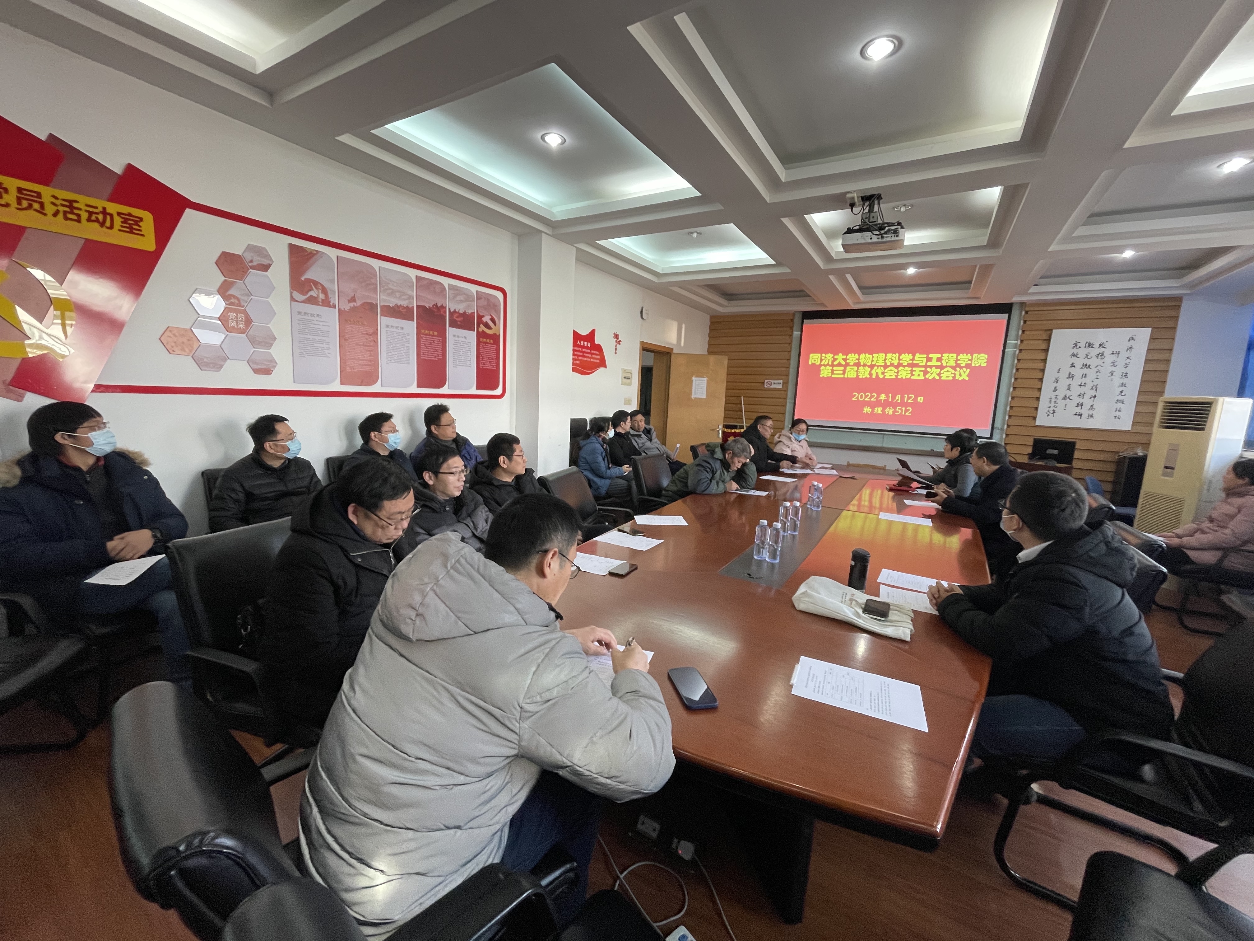 2022年1月12日下午,242net官网登录入口第三届教代会第五次会议,在242net官网登录入口四平路校区物理馆512会议室举行。学院党政领导、校院教代会代表,列席代表,共计24人参加了会议。会议由学院党委副书记、工会主席殷娣娣主持。