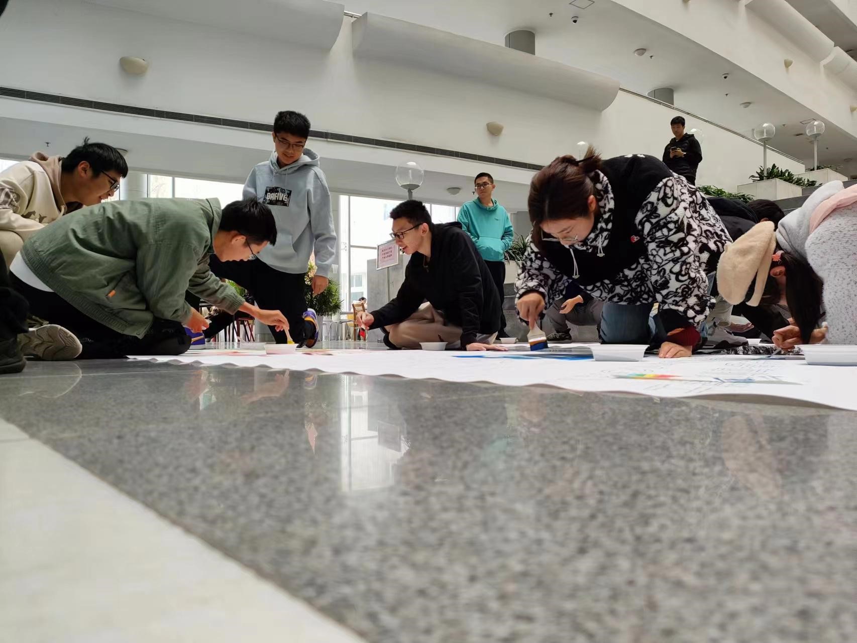 最终江涛老师和同学们围绕着巨画合影,接下来还组织了畅享未来的茶话会,一起交流了学习生活中的问题,同学们都说这次班级团建活动劳逸结合,非常让人难忘。