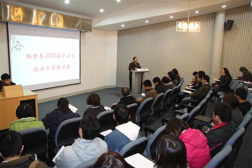 12月15日下午1:30瑞安楼报告厅,物理系召开了2010届毕业生就业工作推进会,物理系系主任王占山教授、系党总支书记周斌教授、副系主任羊亚平教授、波耳所副所长沈军教授和鲍鸿吉副教授以及相关人员和毕业班学生均参加了会议。系主任王占山教授、系党总支副书记考书健老师等均在会上发言。会议还特别邀请了242net官网登录入口大学生就业指导中心副主任陈红老师介绍在校学生在求职和职业规划方面的一些工作和(未来的一些)计划。