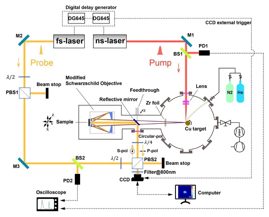 图1 纳秒极紫外泵浦-飞秒红外激光探测成像损伤测试系统