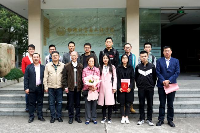 “传承-感恩”科创青年教育基金捐助人夏婉锦女士,64届物理校友王少杰先生,学院党委张众书记,穆宝忠副院长,考书健副书记,教育基金办公室林宇航老师出席本次颁奖典礼。